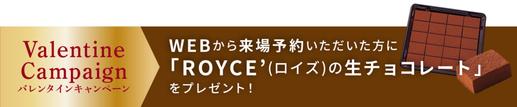 こちらのページから、ご来場の前日までにご来場予約された方に、「ROYCE’(ロイズ)の生チョコレート」をプレゼント!